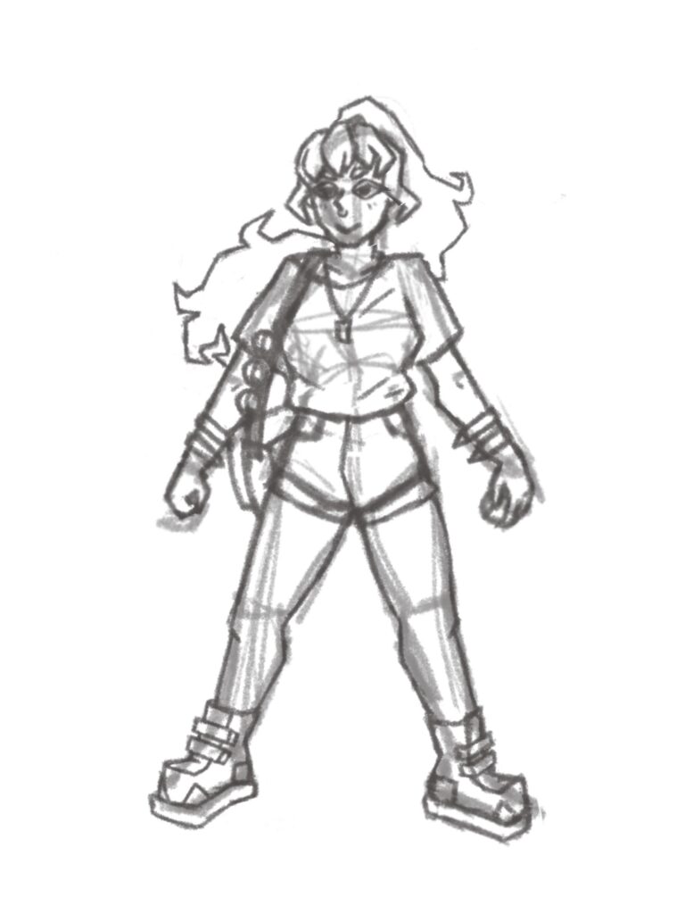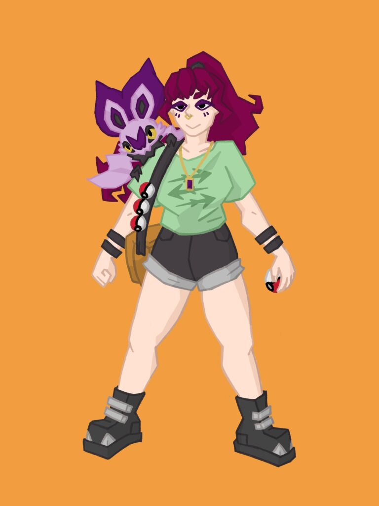 Bei dieser Zeichnung wollte ich einen Character gestalten, der mich selbst in der Welt der Pokémon-Spielereihe repräsentieren könnte.